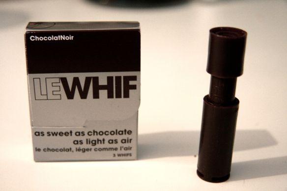 Le Whif fonctionne en gros sur le même principe, puisqu’il s’agit ici aussi « d’inhaler une saveur « … Version portative et commercialisable, le Whif vous offre ainsi la possibilité de respirer l’air du temps, et de sniffer votre chocolat !