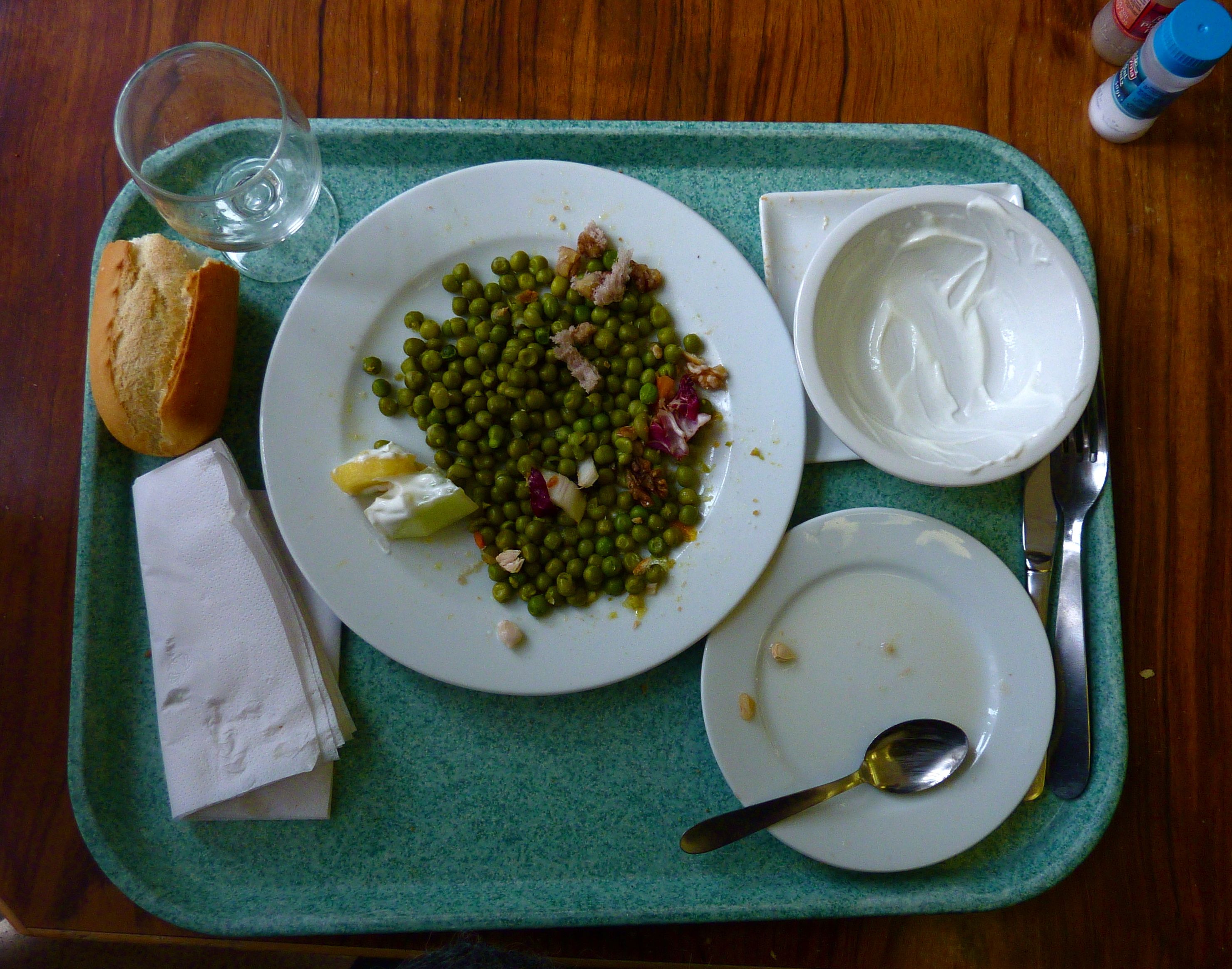 A la cantine, c’est l’accompagnement incontournable du poisson, dont il partage symboliquement la blancheur. Pourtant, pas question de le laisser napper de sauce au beurre blanc(lui aussi !). « Rouge sur blanc, tout fout le camp », qu’à cela ne tienne ! C’est à grand renfort de ketchup que chacun tentera de colorer, relever, délayer la galaxie des grains de riz gravitant autour du pavé de colin blafard. Même si les conséquences de cet assaisonnement sont imparables : refroidissement immédiat. Manger froid mais manger coloré, tel est ainsi l’enjeu de la dialectique du blanc et du rouge qui se joue dans les assiettes de la cantine.